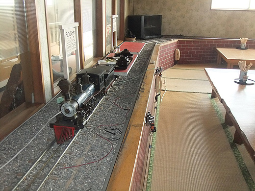 このご主人は鉄道模型が大好きで、食事を機関車が運んでくれます。